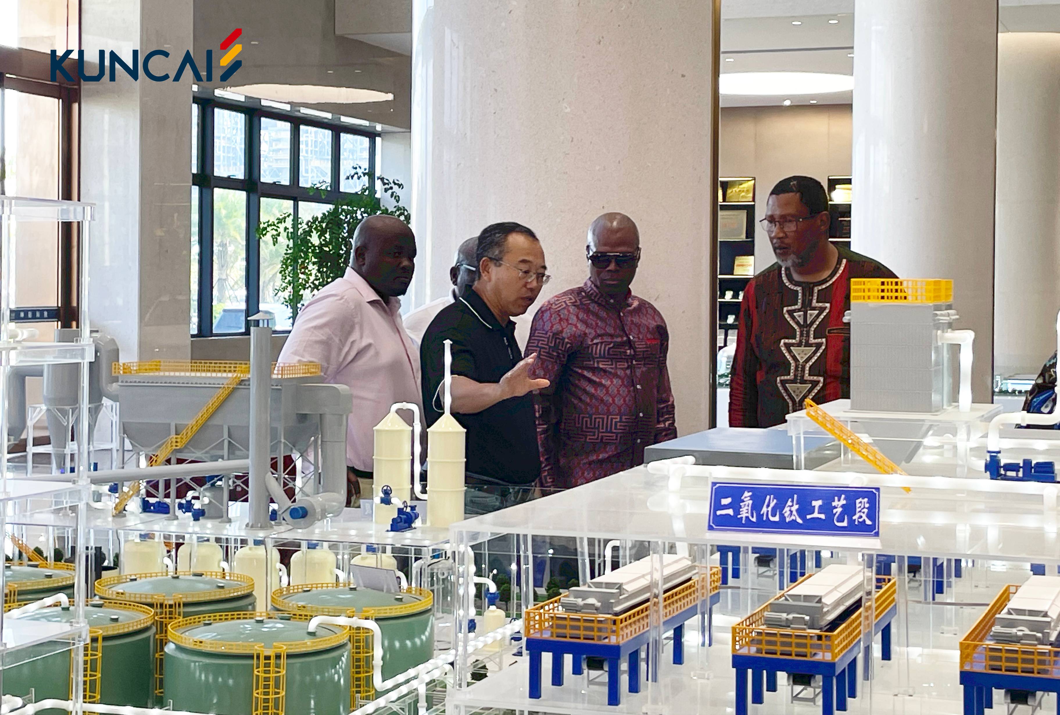 在正太新材厂区,爱体育官方网站技术总监曹志成博士为曼德拉一行详细介绍了坤彩和正太发展规划、厂区布局和生产工艺。就企业自主研发的萃取法氯化钛白生产技术、生产控制系统、销售系统、数字系统、安全管理系统进行全面讲解。